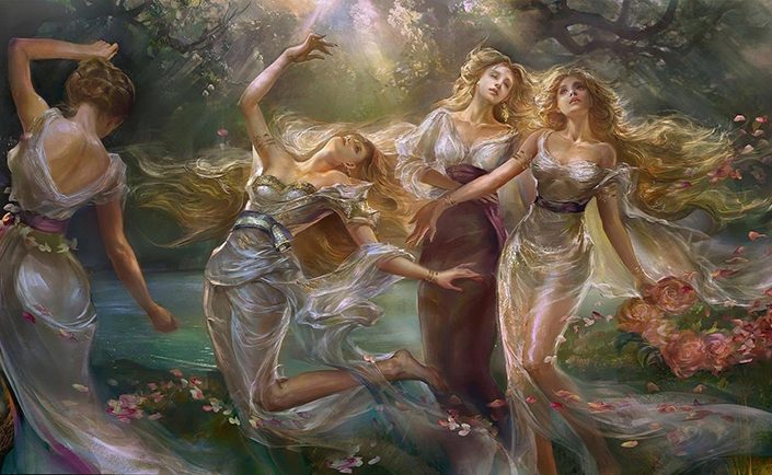 大いなる女神は万物全てに宿り、その子どもは自己実現を達成した人間(男性と女性の両方)を象徴していました。女性の方が女神の力をより容易に使うことができると考えられているのは、女性の方が女神と同一視されることが容易だからという理由です。実際、古の時代の女性たちは女神と部族とを結ぶ仲介者となっていました。男性が過補償(弱点や過失を補うために逆のことを過度に行うこと)によってこの男女のバランスが崩れ、男性は女性たちを下層階級に追いやるという結果になりました。なぜ男性は女性を恐れることになったのか。それは、一部の男性が女性だけが使える魔法、特に出産能力、血液、直感的才能などを恐れていたからとも考えられています。