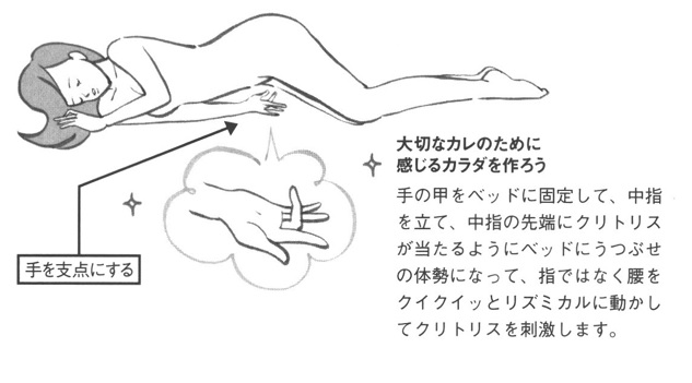 一般的なセルフプレジャーは、手を動かしてクリトリスを愛撫しますが、それとは正反対に手の方を固定して腰を動かしてクリトリスを刺激します。
